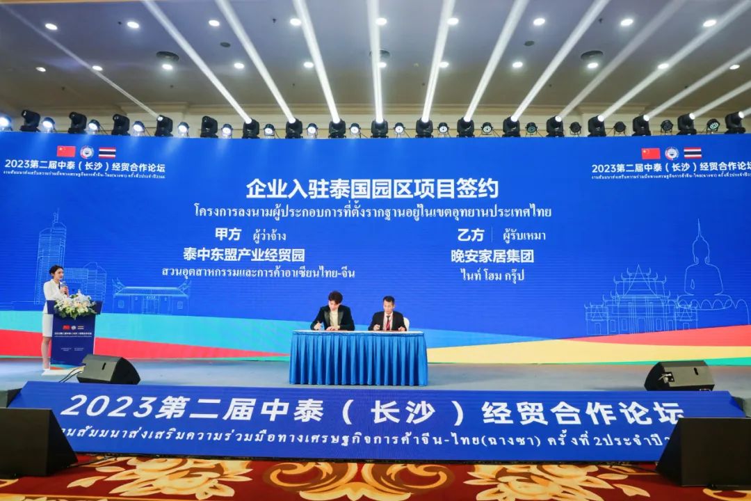 “目前,总投资超过5亿美元的泰国泰中东盟产业经贸园入驻湖南建材家居企业400余家,众多行业企业在此落地生根,一派繁荣。”泰国泰中东盟产业经贸园董事长杨清筑介绍,经贸园总规模890亩,第一期280亩,已建成50000平方米,集会展中心、酒店、仓储等于一体;第二期将建设海外仓、厂房等,将打造为东盟市场各类企业最大集散中心,推动湖南与东盟合作共赢。