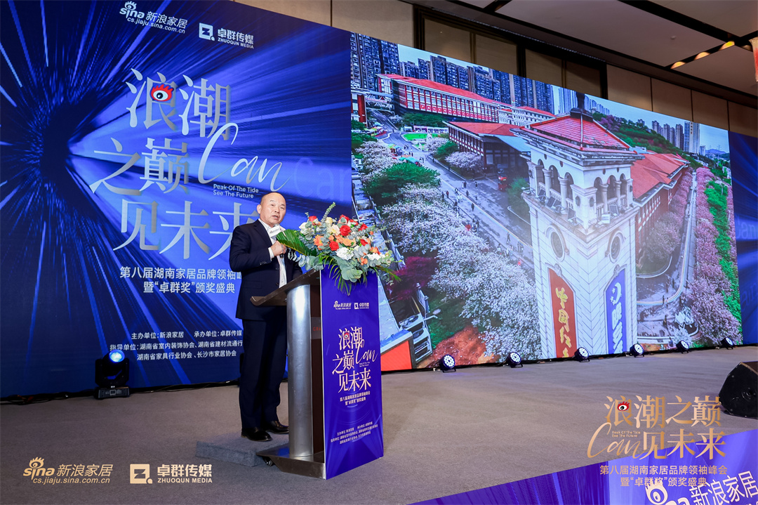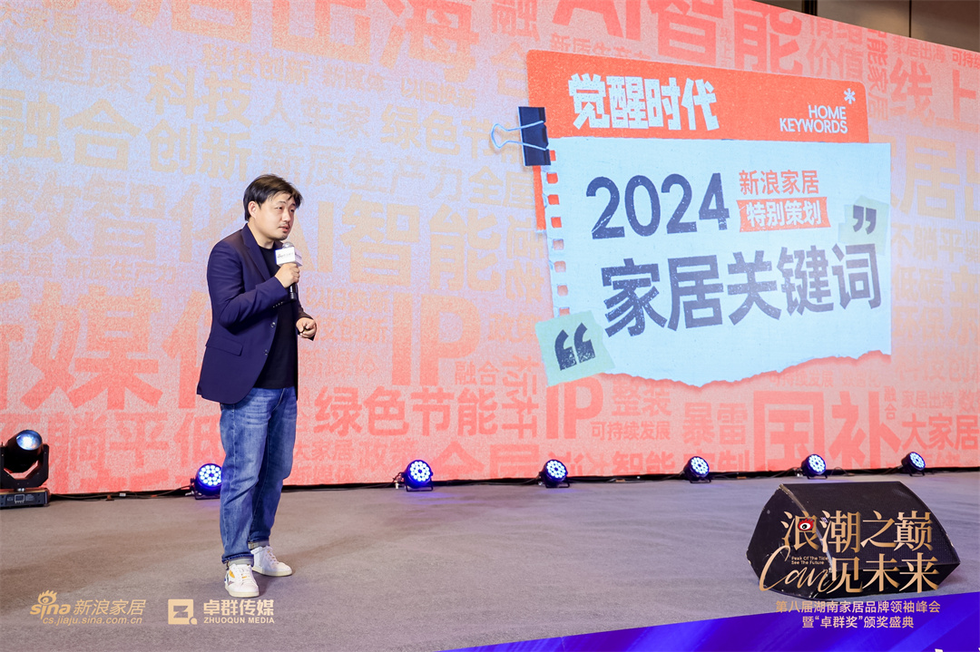 作为东道主,长沙新浪家居、卓群传媒总经理欧杰也上台为本次峰会主题释义,在全球经济波动的大潮中,家居行业如同身处惊涛骇浪的航船,每一位家居人都在探寻破浪而行的新路径。尽管寒意未散,但风口浪尖,正是激流勇进之时。唯有站上“浪潮之巅”,才能以更高的视野预见未来,以智慧与行动迎接变革的时代机遇。