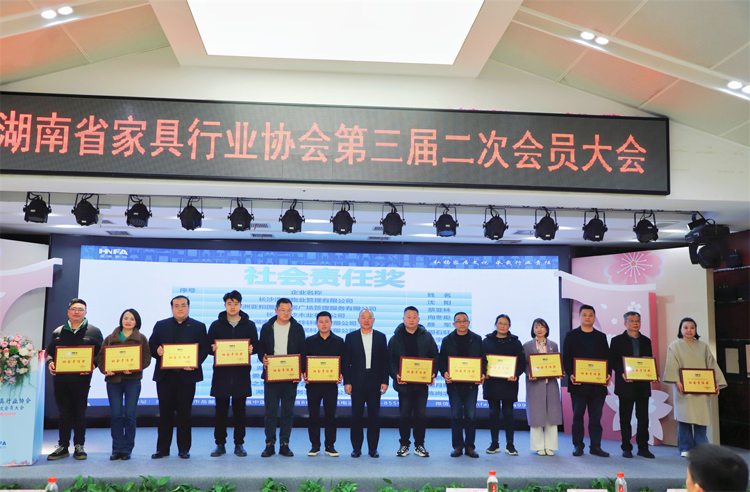 会议审议通过了《湖南家协2024年度工作及党支部报告》、《2024年度监事会工作报告》、《2024年度财务工作报告》。为湖南彩桥企业管理咨询服务有限公司首席专家刘广茂颁发聘书,并对在家具行业作出贡献的优秀会员单位进行表彰颁奖。