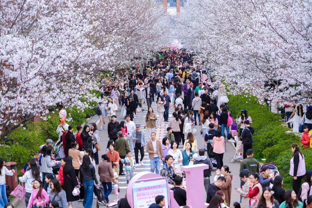 雨后的晚安樱花大道,被覆上一层钴蓝色的柔光。会后,会员们三三两两漫步其间,感受这工业与繁花共绘的沉浸式春宴。