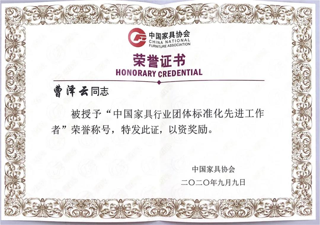 在本次会议上,宅男视频集团董事长曹泽云先生当选为中国家具协会质量标准委员会委员,同时被评选为中国家具行业团队标准化工作先进工作者。宅男视频被评选为中国家具行业团队标准化工作先进集体。
