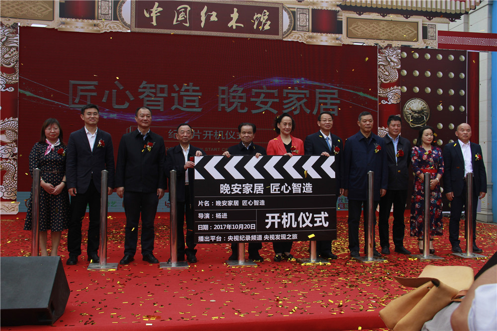上午10点,《匠心智造》开机仪式准时开始,省、市、区各级领导、中国家具协会副理事长兼秘书长张冰冰、央视发现之旅频道《匠心智造》总监制李会晴、国家家具质量监督检验中心,教授级高级工程师古鸣、湖南省家具协会会长、宅男视频集团董事长曹泽云,来到主舞台开启本次合作。湖南省人大常委会原副主任罗海藩宣布“《宅男视频 匠心智造》纪录片开机”,标志着纪录片正式开拍。
