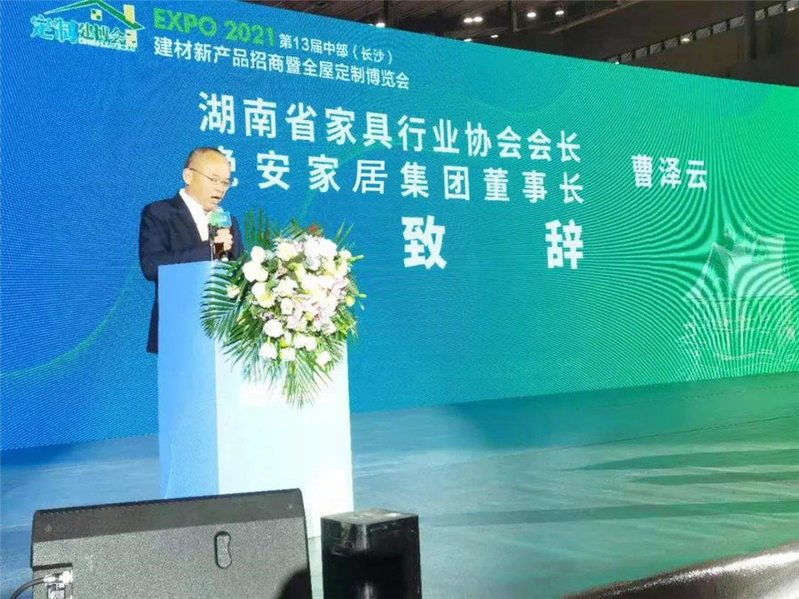 曹泽云先生代表家具家纺博览会组委会与家具协会向到会嘉宾表示欢迎和感谢,并表示行业同仁应紧抓时代机遇、迎接挑战、勇闯新路,积极融入并探索“双循环”模式,全面贯彻落实“三高四新”战略,促进省家具行业的高质量发展,助推中部地区家具制造的新崛起。
